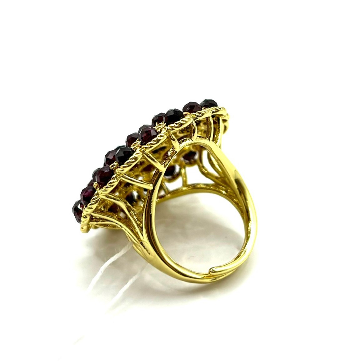 Кольцо с натуральными гранатами выделяется насыщенным винным оттенком камней и аккуратной гранёной обработкой, которая даёт красивый, собранный блеск. Основа выполнена из высококачественного бижутерного сплава и покрыта позолотой, благодаря чему кольцо выглядит благородно и остаётся устойчивым к износу. Регулируемая конструкция позволяет комфортно носить модель на любом размере. Отличный выбор для тех, кто ценит выразительные натуральные камни.