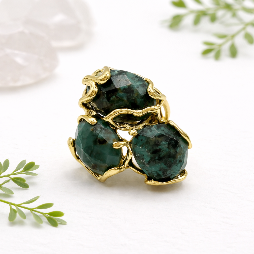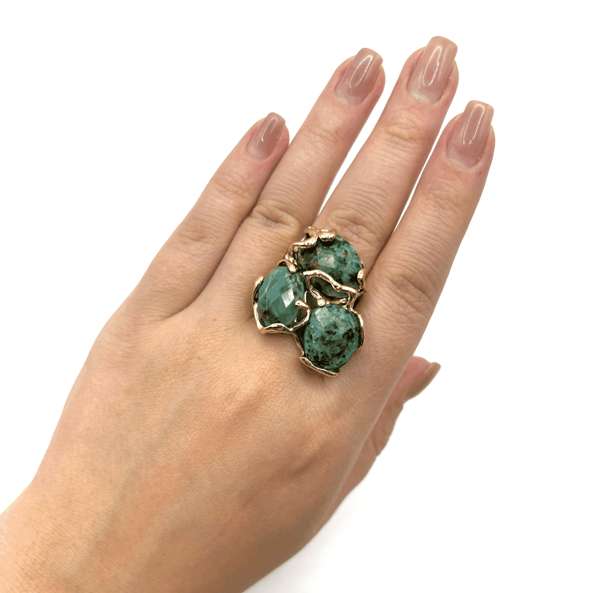 Ажурное кольцо с натуральной бирюзой станет ярким акцентом любого образа. Насыщенный бирюзово-зелёный оттенок красиво раскрывается в сочетании с позолоченной основой, подчёркивая сложный рисунок оправы и природную фактуру камня. Украшение выполнено из прочного бижутерного сплава с долговечным позолоченным покрытием, поэтому отлично подходит для регулярной носки. Безразмерная конструкция позволяет комфортно регулировать посадку, а натуральная бирюза делает это кольцо заметным и запоминающимся с первого взгляда.