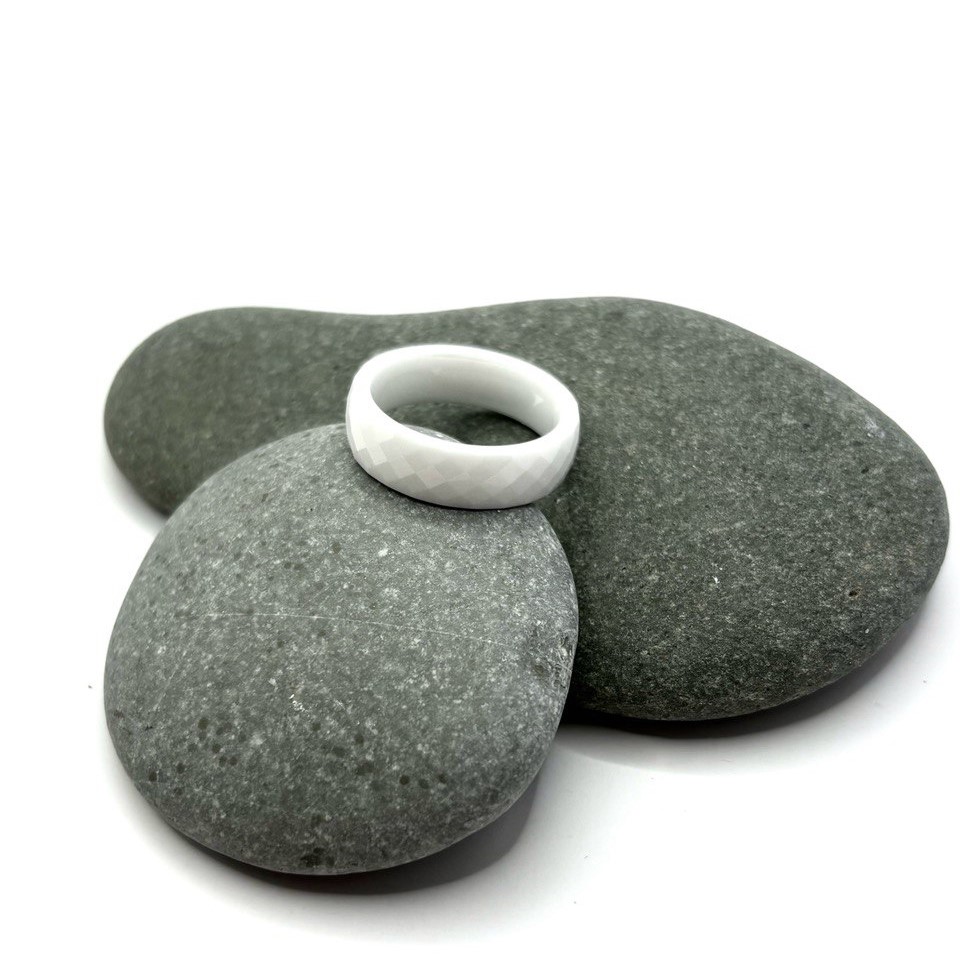 Стильное кольцо из белой керамики с минималистичным дизайном.