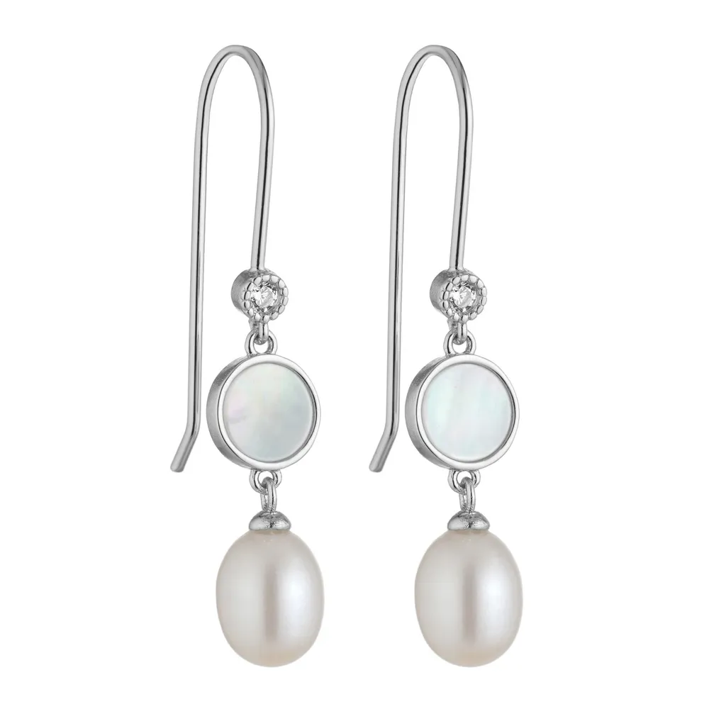 Серьги с речным жемчугом, перламутром и цирконами создают гармоничное сочетание текстур: перламутр даёт мягкие переливы, жемчуг добавляет глубины, а цирконы — лёгкое сияние. Изящная форма подчёркивает женственность, а высококачественный бижутерный сплав обеспечивает комфорт и долговечность. Украшение подходит как для вечера, так и для повседневной элегантности.