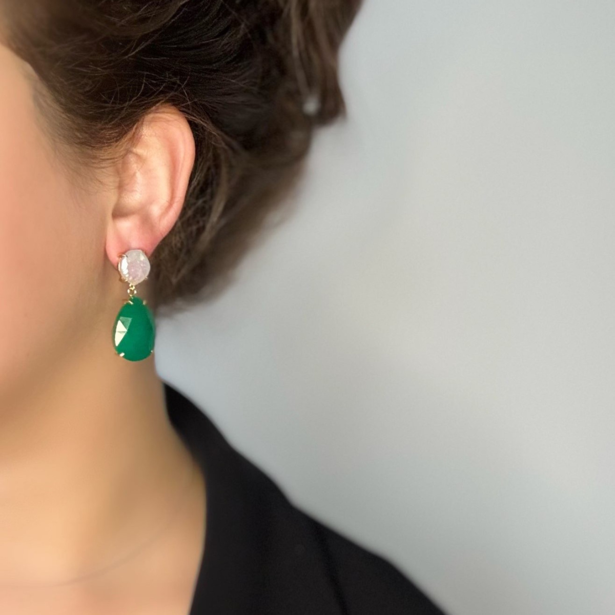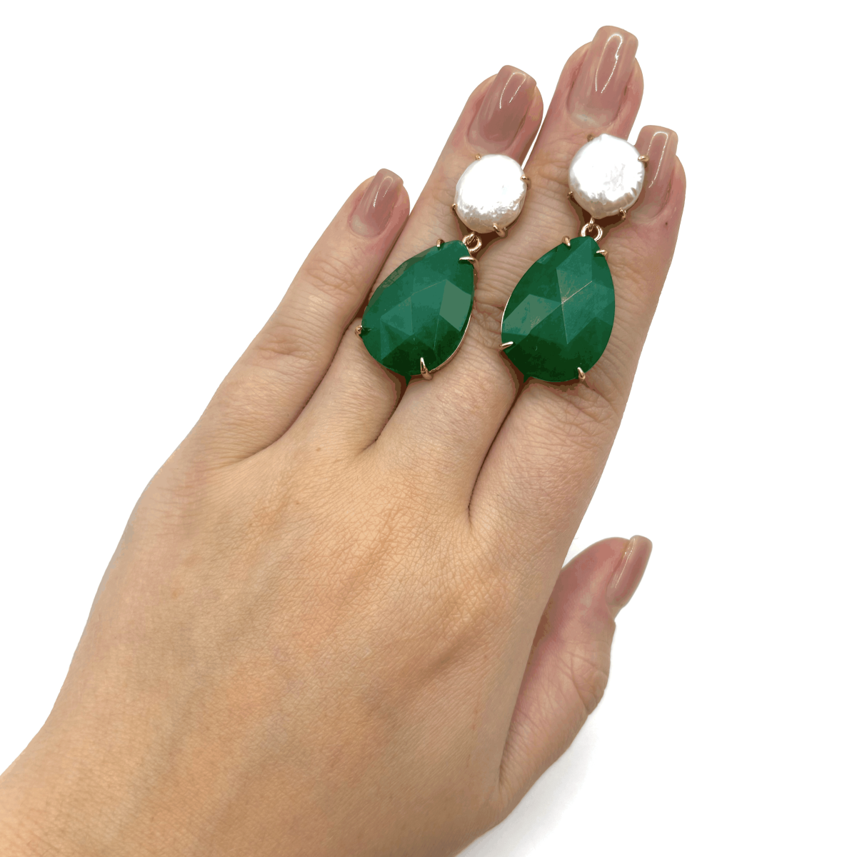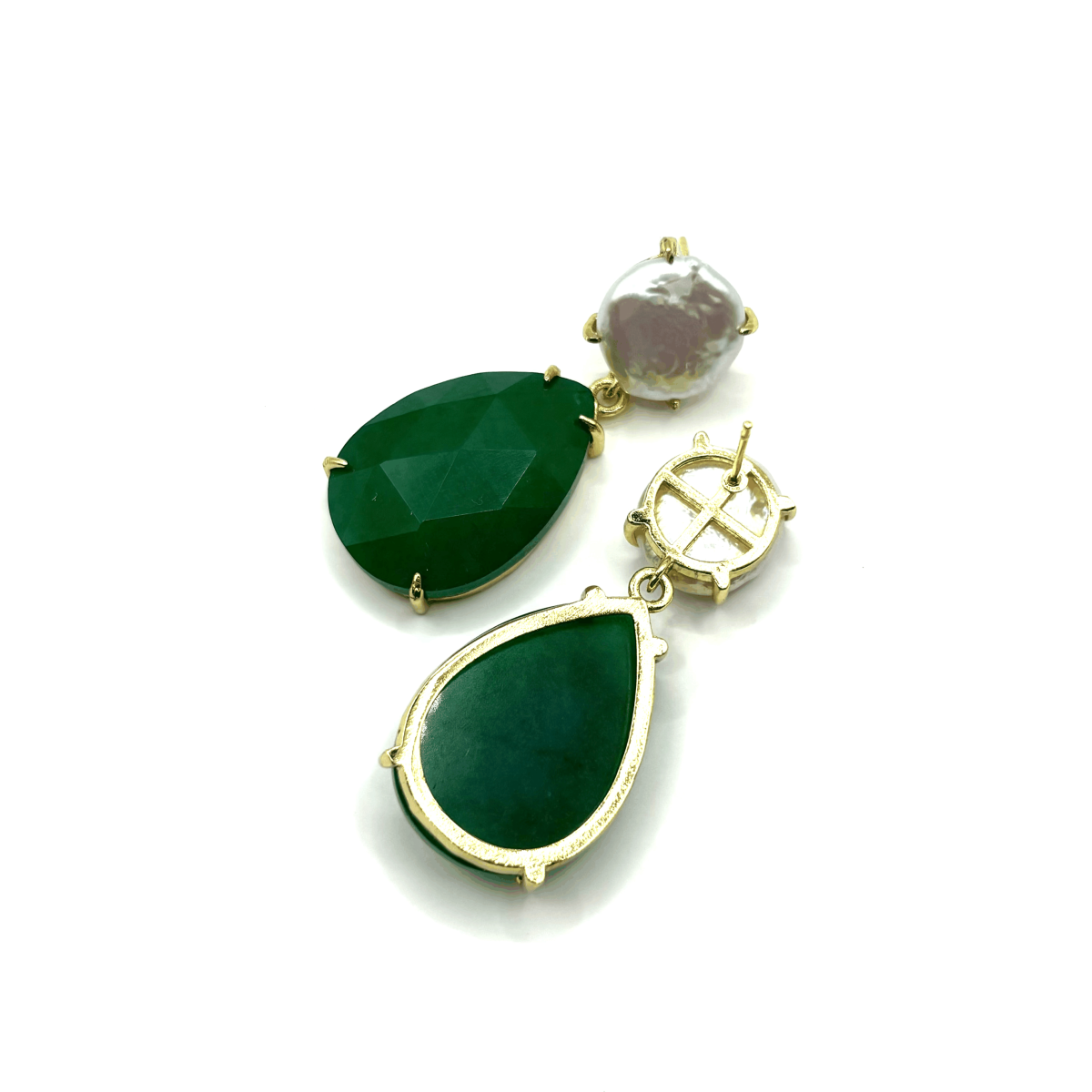 Серьги с барочным жемчугом и зелёным кварцем впечатляют сочетанием текстур: нежная асимметрия жемчужины и прозрачное сияние кварца создают мягкий, женственный акцент. Высококачественный бижутерный сплав с позолотой даёт комфорт и долговечность. Замок-гвоздик надёжно удерживает серьги, плотно прилегает к мочке и не вращается в процессе носки.