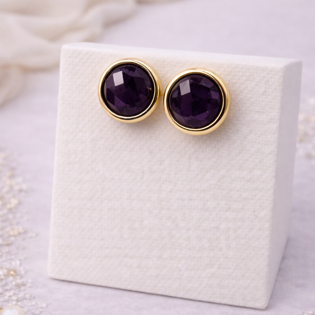 Пусеты с аметистом подчёркивают индивидуальность благодаря чистому фиолетовому оттенку и красивой огранке, которая раскрывает глубину натурального камня. Высококачественный позолоченный сплав делает серьги долговечными и гипоаллергенными. Замок-гвоздик надёжный, комфортный и универсальный для ежедневной носки.