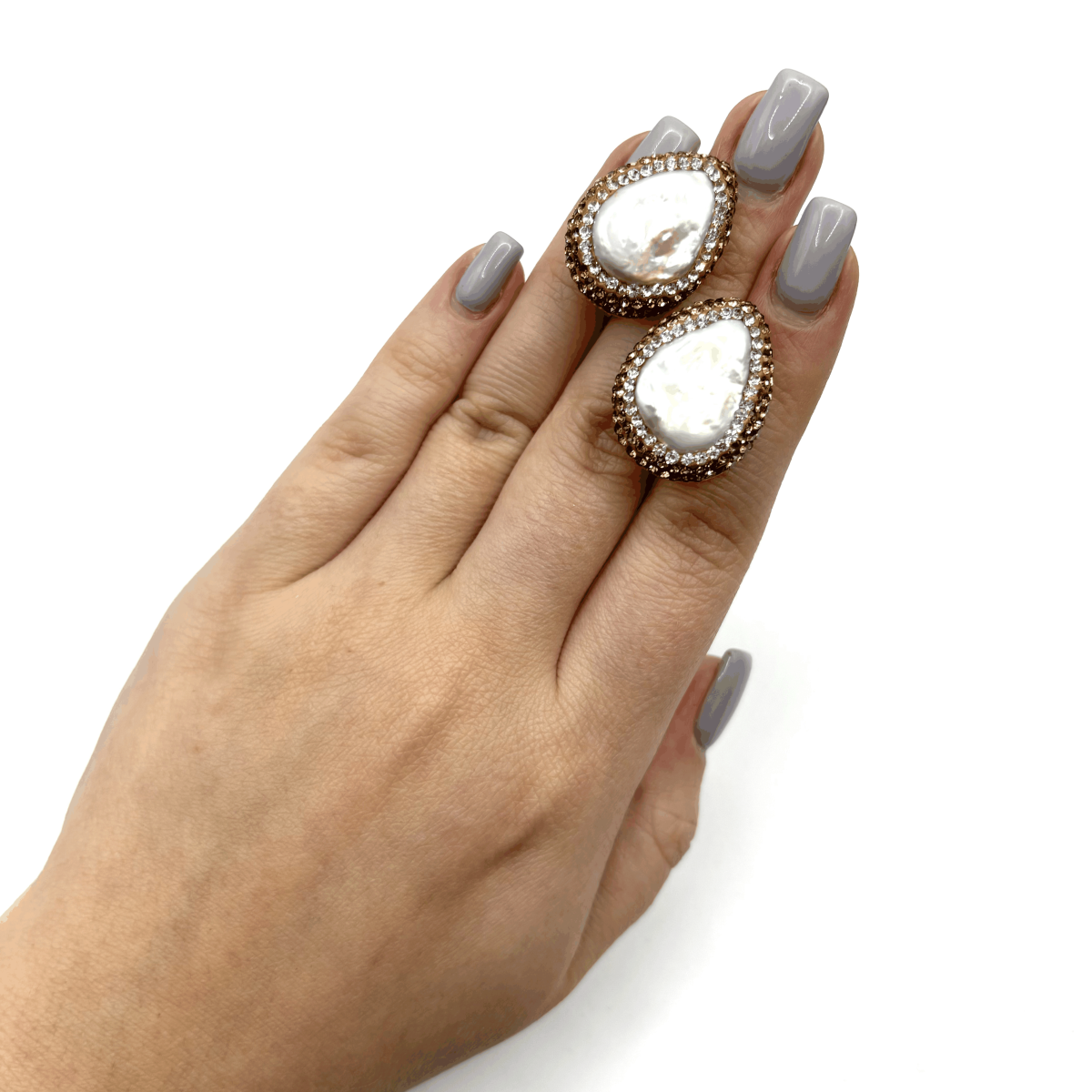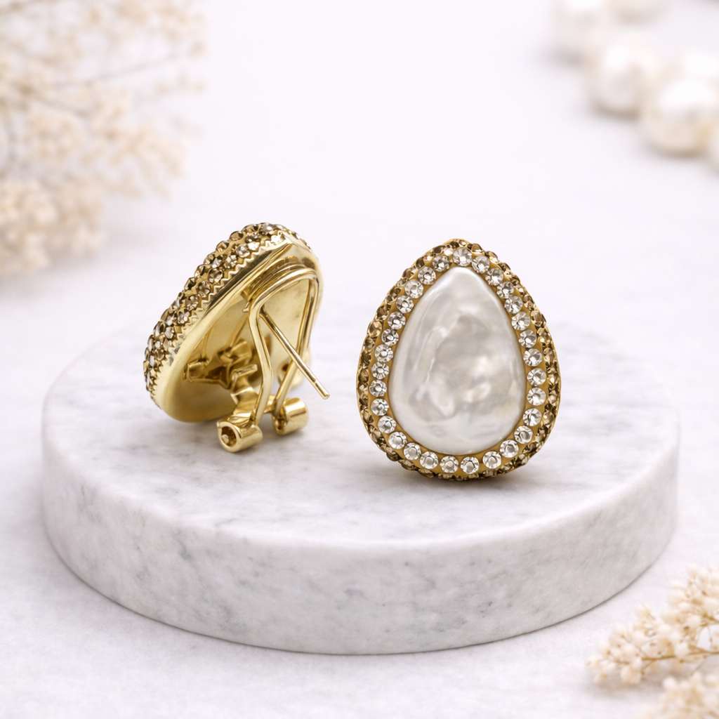 Серьги с крупным барочным жемчугом и кристаллами создают выразительный, но при этом утончённый акцент в образе. Неровная форма жемчужин подчёркивает естественную красоту, а лёгкое сияние кристаллов добавляет праздничного блеска. Высококачественный позолоченный сплав выглядит благородно, а итальянский замок надёжно фиксирует серьги и остаётся комфортным весь день.