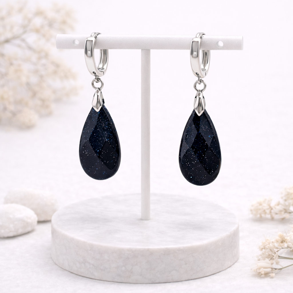 Серьги-конго с подвесками из авантюрина объединяют строгий серебряный цвет металла и глубокое мерцание тёмно-синего камня. Такой дуэт органично вписывается и в базовый гардероб, и в более смелые образы. Высококачественный бижутерный сплав обеспечивает долговечность, а замок-конго удобно застёгивается и не раскрывается при движении.