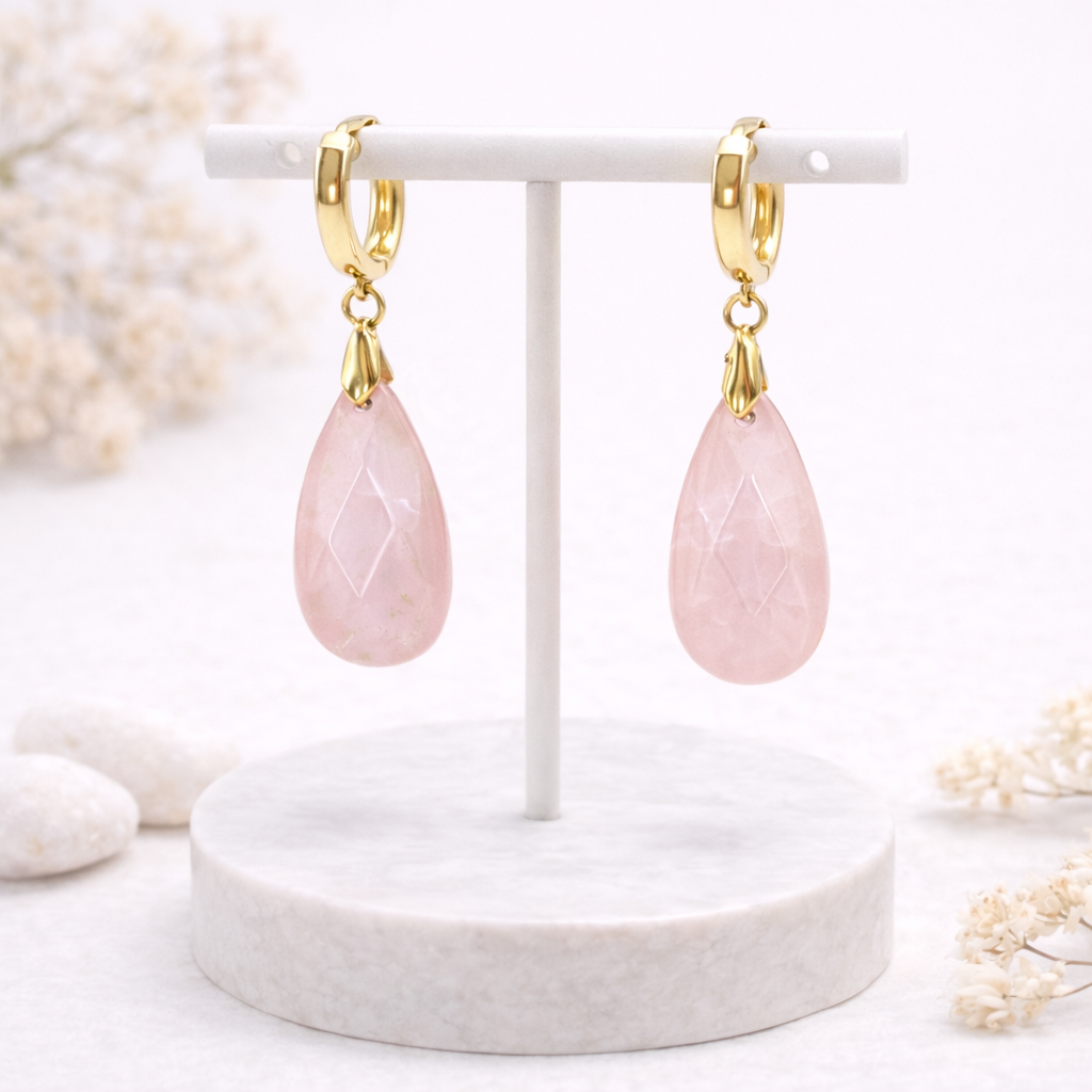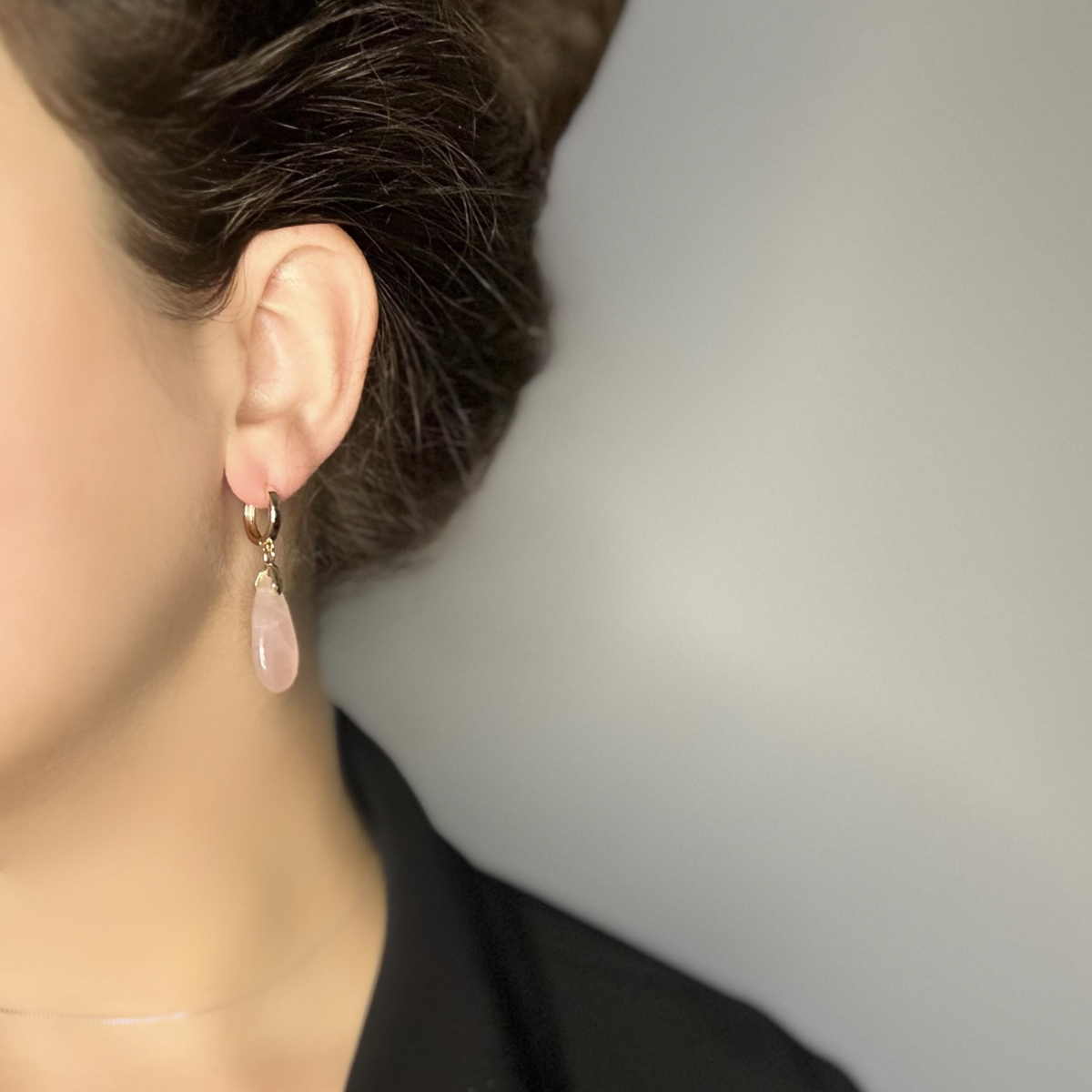 Серьги-конго с розовым кварцем смотрятся мягко и романтично: нежный женственный камень даёт деликатное свечение, а тёплая позолота подчёркивает его спокойный оттенок. Высококачественный сплав надёжен и приятен в носке. Замок-конго почти не ощущается на ухе, удобно застёгивается и позволяет серьгам красиво играть на ухе, не цепляясь за волосы и одежду.