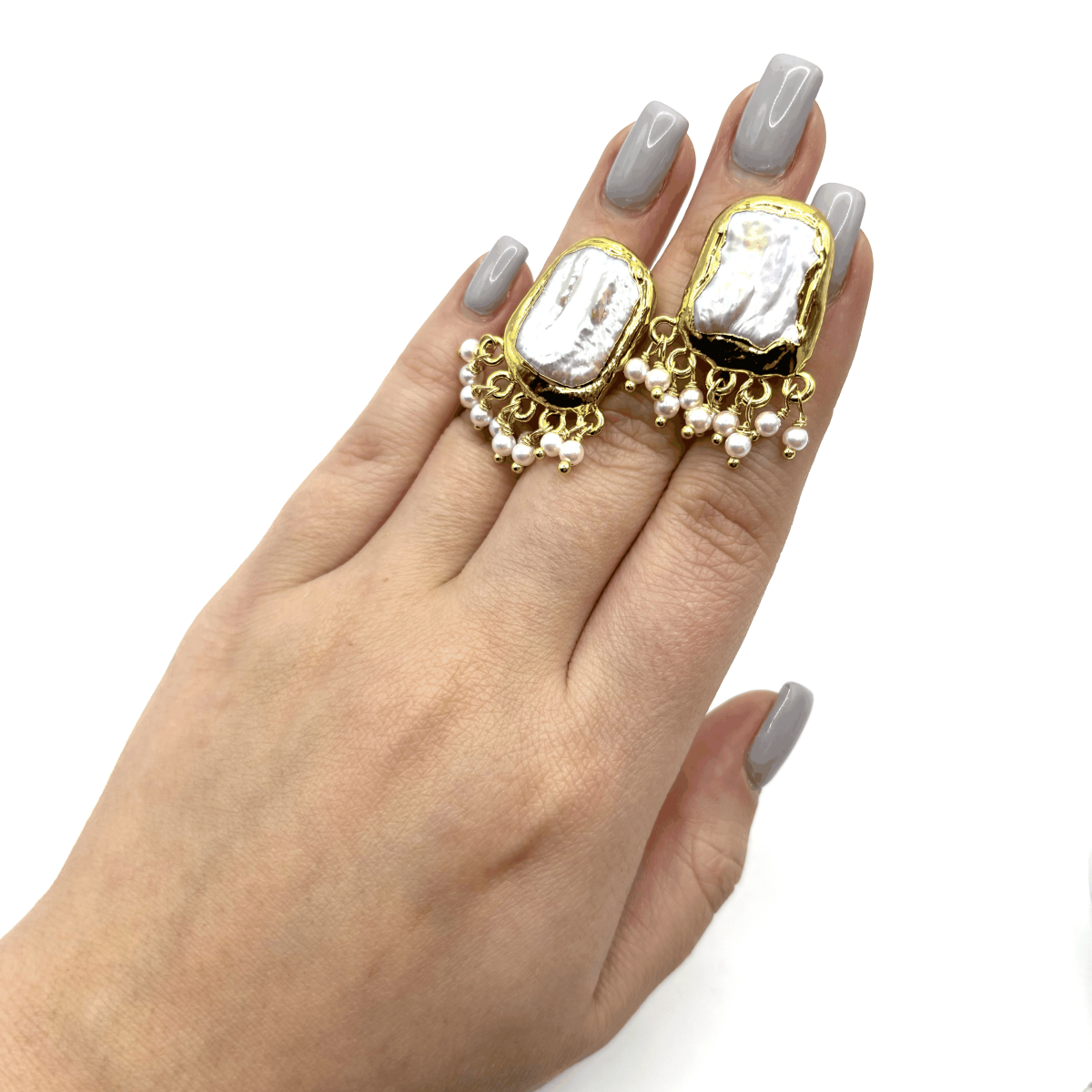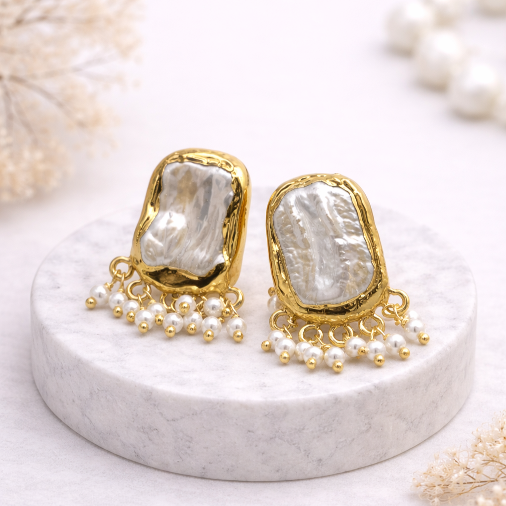 Серьги с крупным барочным жемчугом создают эффект статусного украшения: каждая жемчужина имеет свою форму и мягкий природный блеск. Позолоченный высококачественный сплав подчёркивает белизну жемчуга и делает серьги долговечными. Замок-гвоздик удобно фиксирует украшение на мочке, не перевешивает и остаётся комфортным даже при длительной носке.