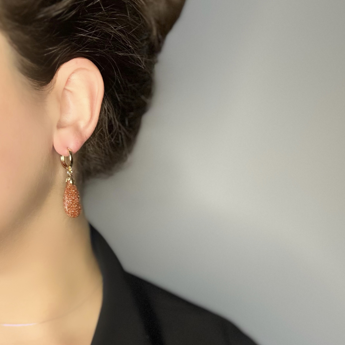 Серьги-конго с авантюрином в тёплом кирпичном цвете станут ярким акцентом в образе, особенно в сочетании с позолотой. Камень красиво мерцает, подчёркивая движение, а лаконичная форма делает аксессуар универсальным. Высококачественный позолоченный сплав приятен к коже и устойчив к износу, замок-конго надёжен и комфортен даже при активном ритме дня.