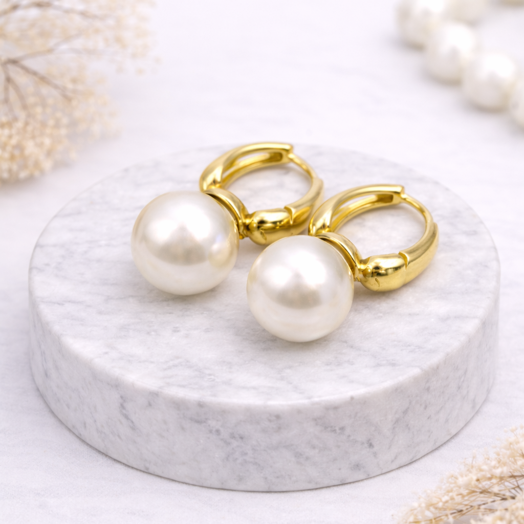 Жемчуг Майорка в тёплой золотой оправе создаёт мягкий, благородный акцент у лица. Перламутровая сферическая вставка выглядит дорого и универсально — такие серьги легко впишутся и в базовый гардероб, и в нарядные образы. Высококачественный позолоченный сплав сохраняет блеск и не утяжеляет мочку. Замок-конго обеспечивает уверенную фиксацию и не раскрывается в течение дня.