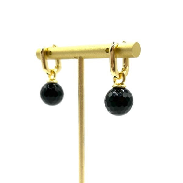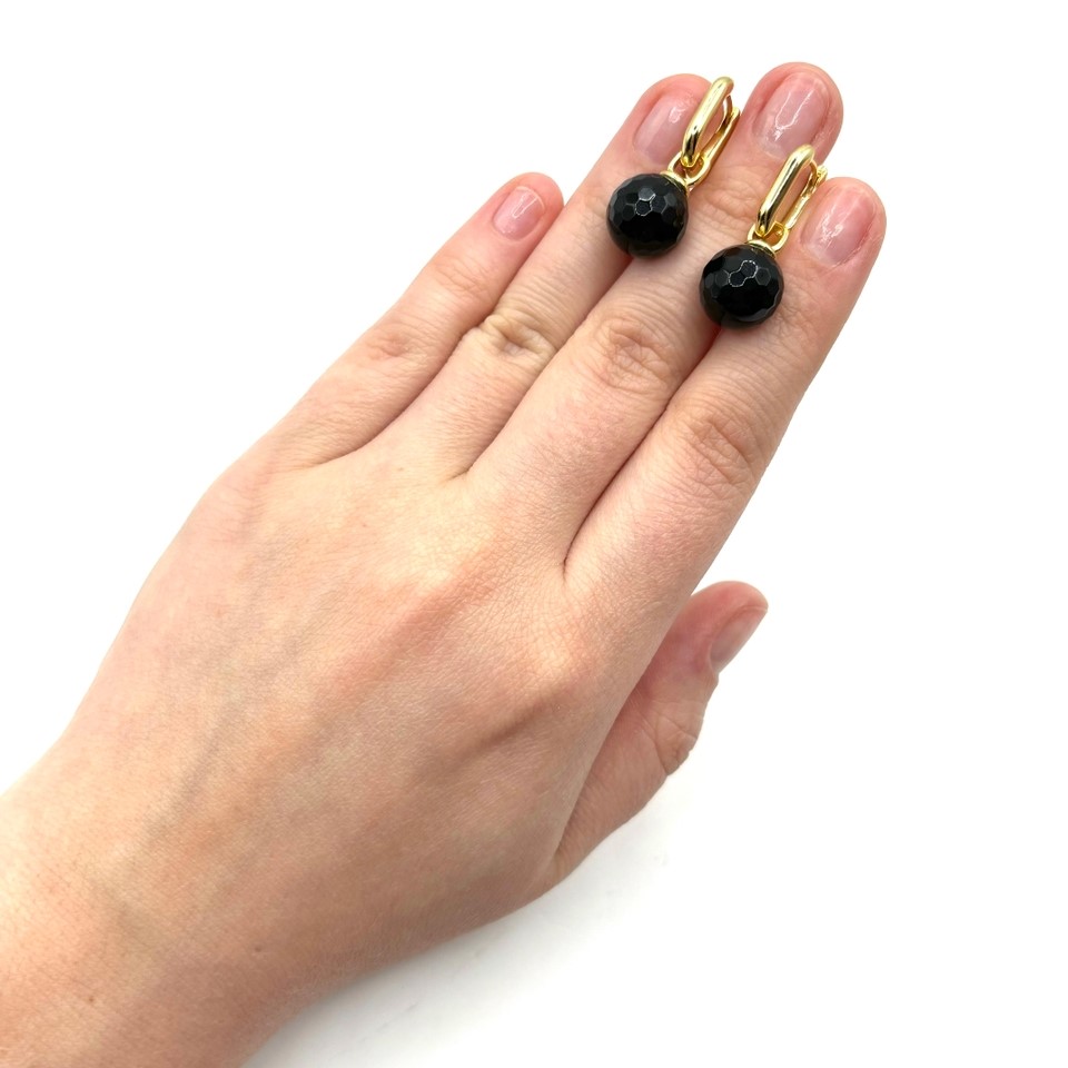 Серьги-трансформеры с чёрным агатом выглядят стильно и утончённо: граненый черный камень создаёт чистый акцент и легко вписывается как в базовый, так и в вечерний гардероб. Можно носить только кольца или дополнять их подвеской, меняя настроение образа. Высококачественный сплав с позолотой устойчив к износу. Замок-конго надёжно фиксируется и обеспечивает комфорт при движении.