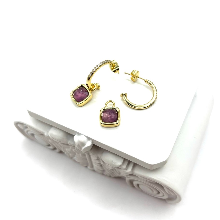 Серьги-трансформеры с аметистом дарят возможность играть с образом: аккуратные гвоздики с камнем можно носить отдельно или дополнять подвесными элементами для более выразительного варианта. Глубокий фиолетовый оттенок красиво играет на свету и подчёркивает индивидуальность. Высококачественный позолоченный сплав делает украшение долговечным. Замок-гвоздик плотно прилегает к мочке и не крутится.