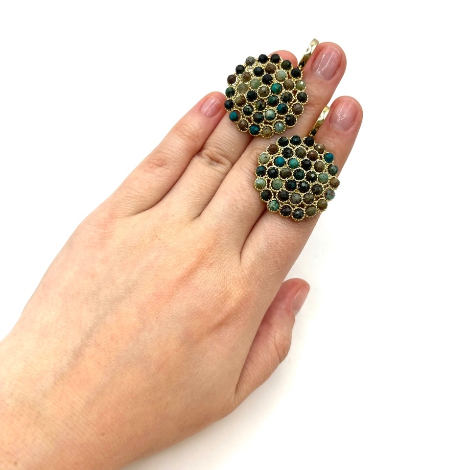 Серьги с натуральной бирюзой смотрятся свежо и выразительно: мягкий бирюзовый оттенок камней создаёт лёгкое, «летнее» настроение в образе. Фактура камня подчёркивается тёплой позолотой, делая украшение заметным, но не вызывающим. Высококачественный бижутерный сплав обеспечивает долговечность. Замок-конго удобен, практичен и почти не ощущается.
