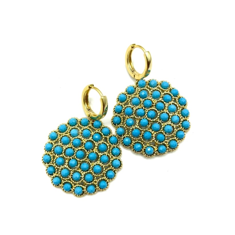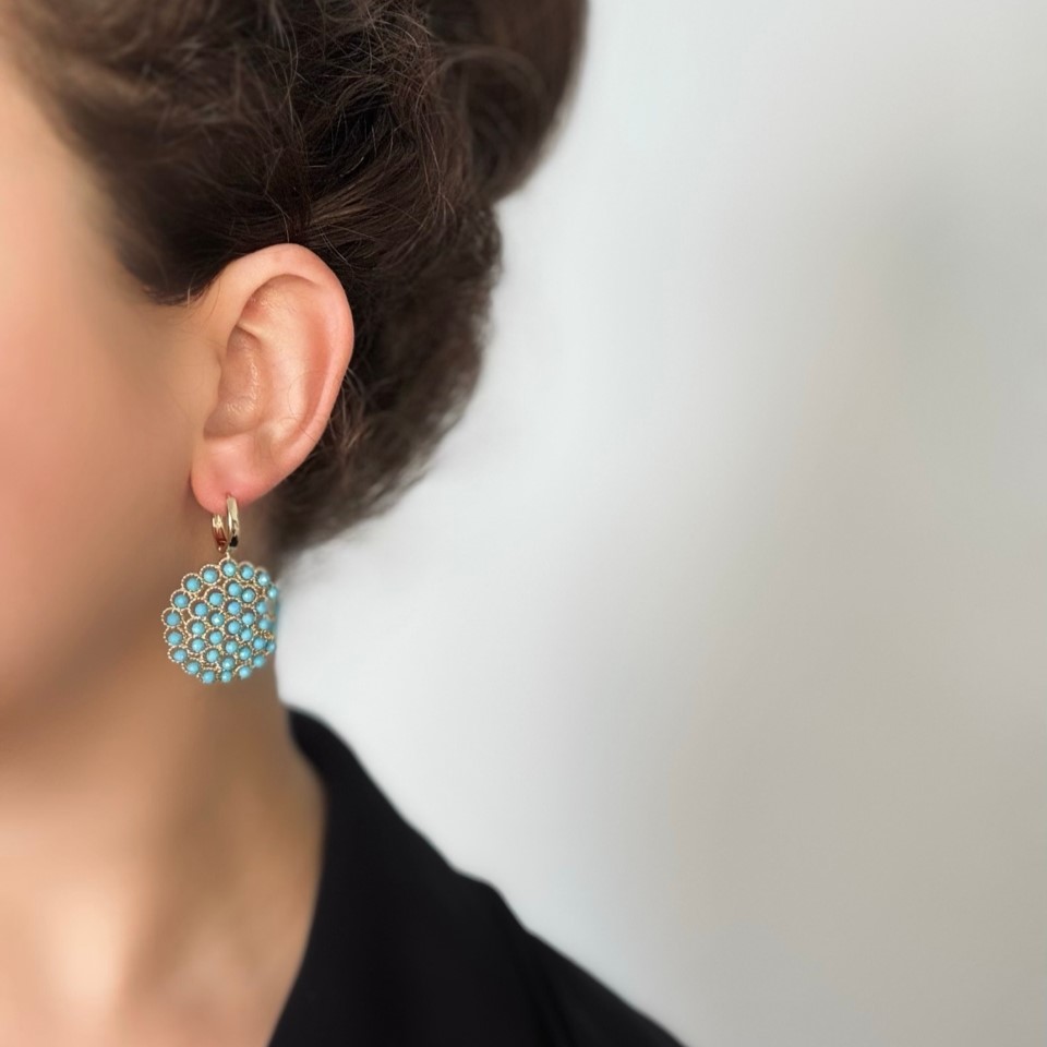 Серьги с голубым тонированным агатом создают нежный, воздушный акцент: мелкие камни мягко переливаются в диапазоне небесных оттенков. Тёплый золотистый металл подчёркивает прохладу голубого агата, делая серьги универсальными и для дня, и для вечера. Высококачественный бижутерный сплав сохраняет блеск и форму. Замок-конго надёжный и комфортный для ежедневной носки.