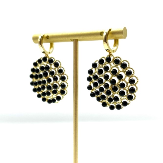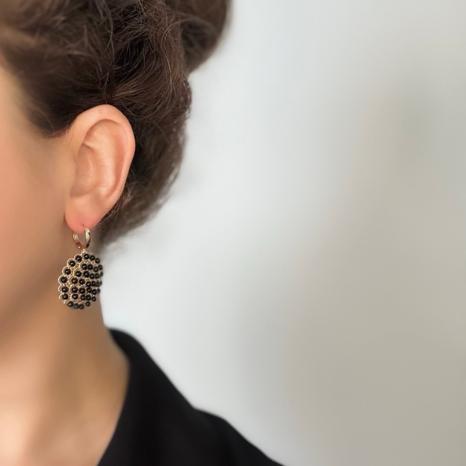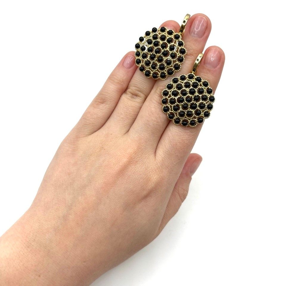 Серьги с чёрным агатом выглядят особенно стильно: глянцевые тёмные камни создают глубокий акцент, подчёркивая черты лица и добавляя образу стилям и элегантности. Позолоченный высококачественный сплав делает украшение выразительным и устойчивым к износу. Замок-конго прочно фиксирует серьги и не раскрывается самопроизвольно.