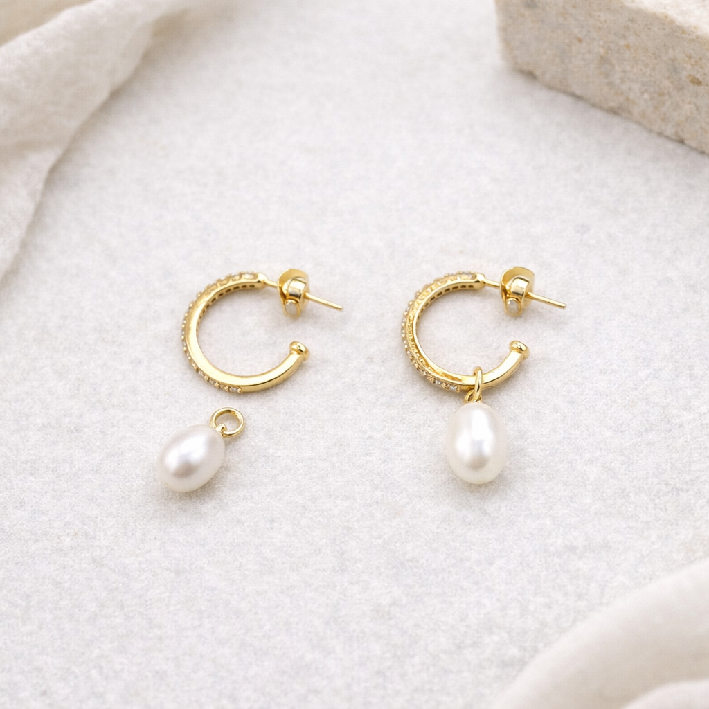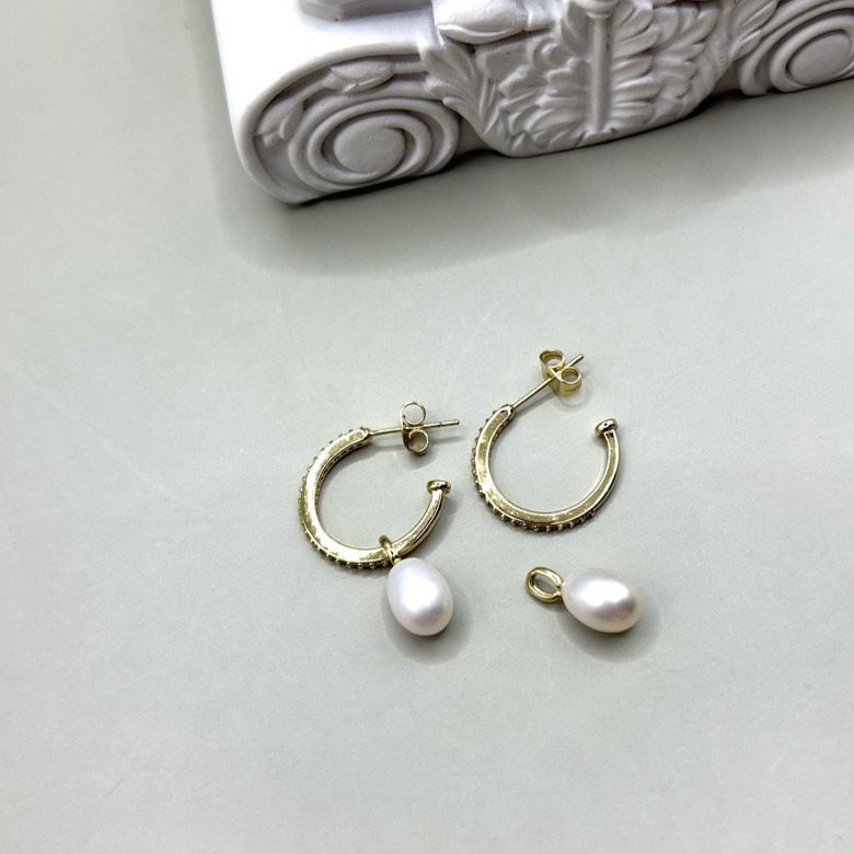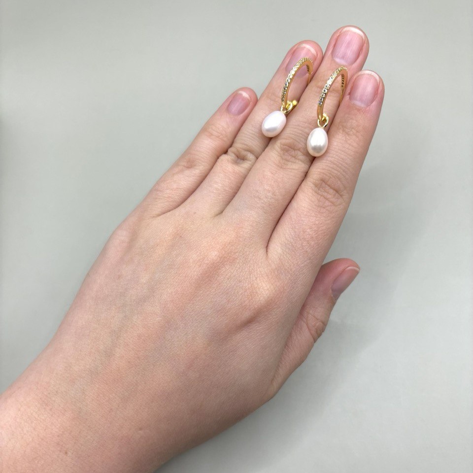 Серьги-трансформеры с речным жемчугом и фианитами позволяют легко менять настроение образа: можно носить лаконичные колечки на гвоздиках с фианитами или дополнять их подвесными элементами. Жемчуг придаёт образу мягкую утончённость, а фианит — аккуратное сияние. Высококачественный позолоченный сплав обеспечивает комфорт и долговечность. Замок-гвоздик плотно прилегает к мочке и надёжен в носке.