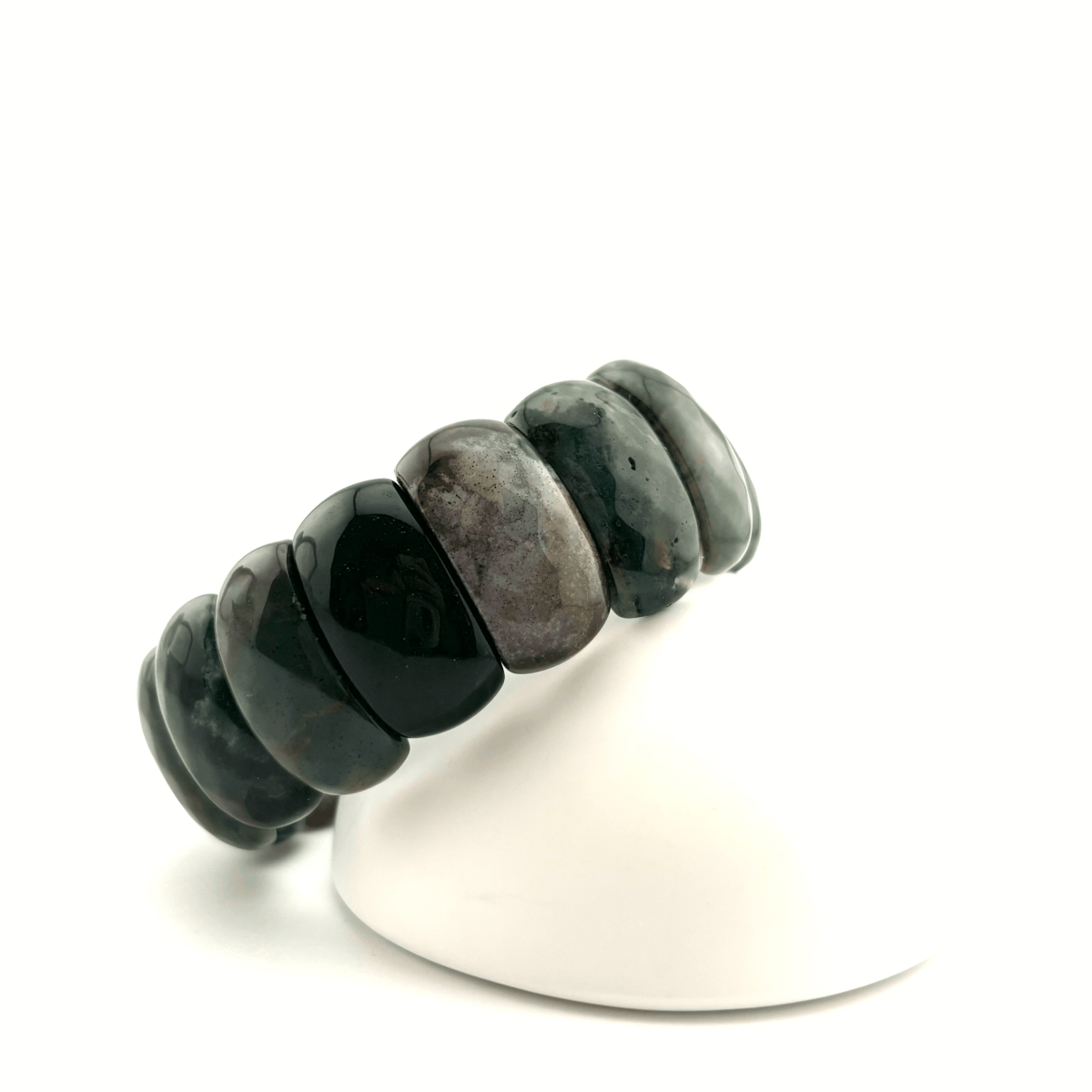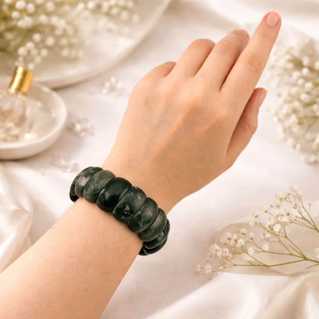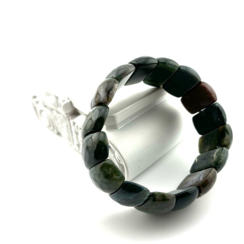 Браслет ДИНОСА с агатом в глубоком темном оттенке напоминает морскую глубину и создаёт выразительный акцент за счёт насыщённого тёмно-зелёного цвета камней. Граненый вставки из натурального агата собраны на прочную резинку и комфортно сидят на руке. Браслет подчёркивает индивидуальность и отлично смотрится как с базовой, так и с более нарядной одеждой.