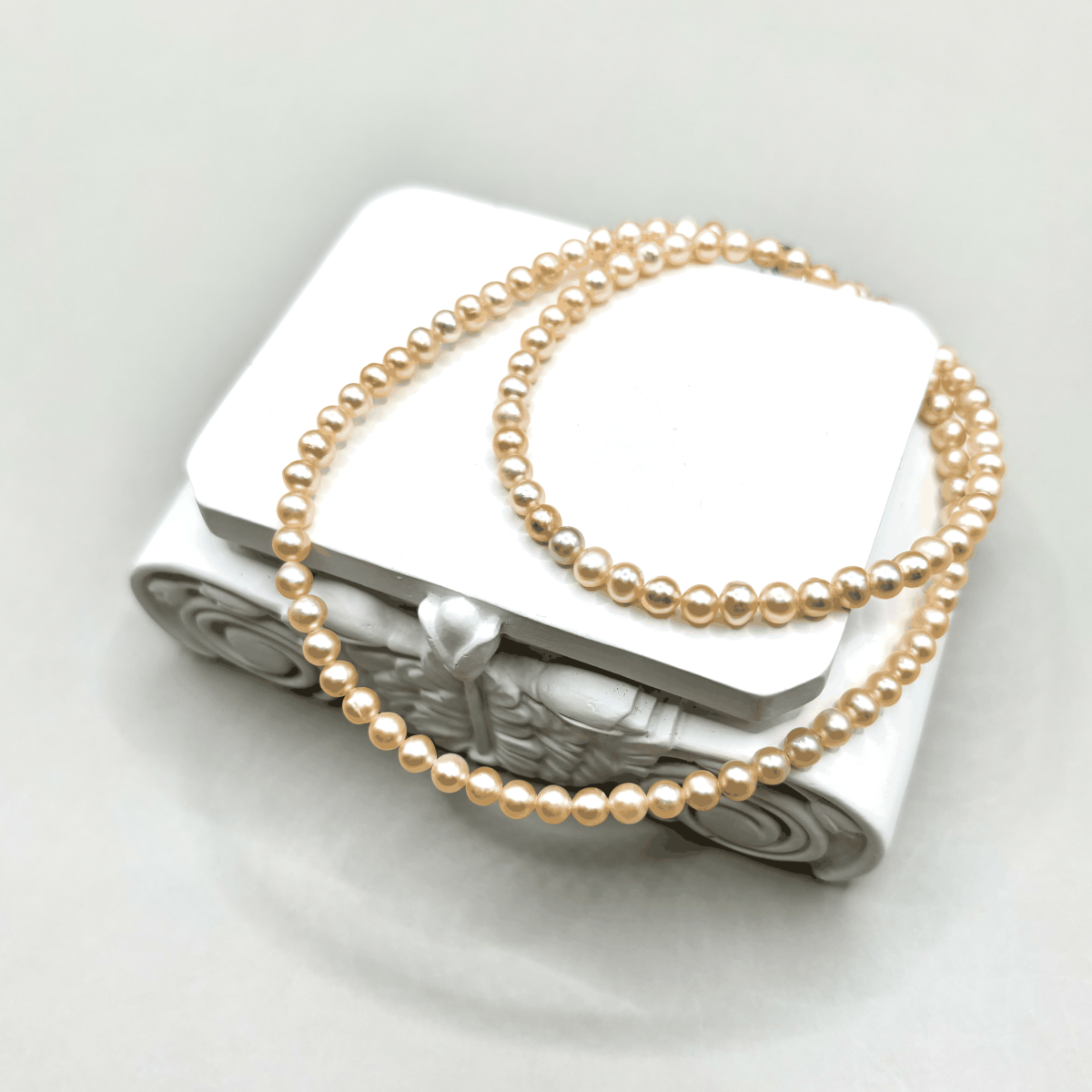 Жемчужно-белые бусы из речного жемчуга добавляют образу чистоты и лёгкого сияния. Небольшие овальные бусины создают деликатную текстуру, подчёркивая женственность и утончённость. Украшение отлично подходит для повседневных комплектов и особых случаев. Фурнитура изготовлена из высококачественного бижутерного сплава, обеспечивая удобство и надёжность носки.
