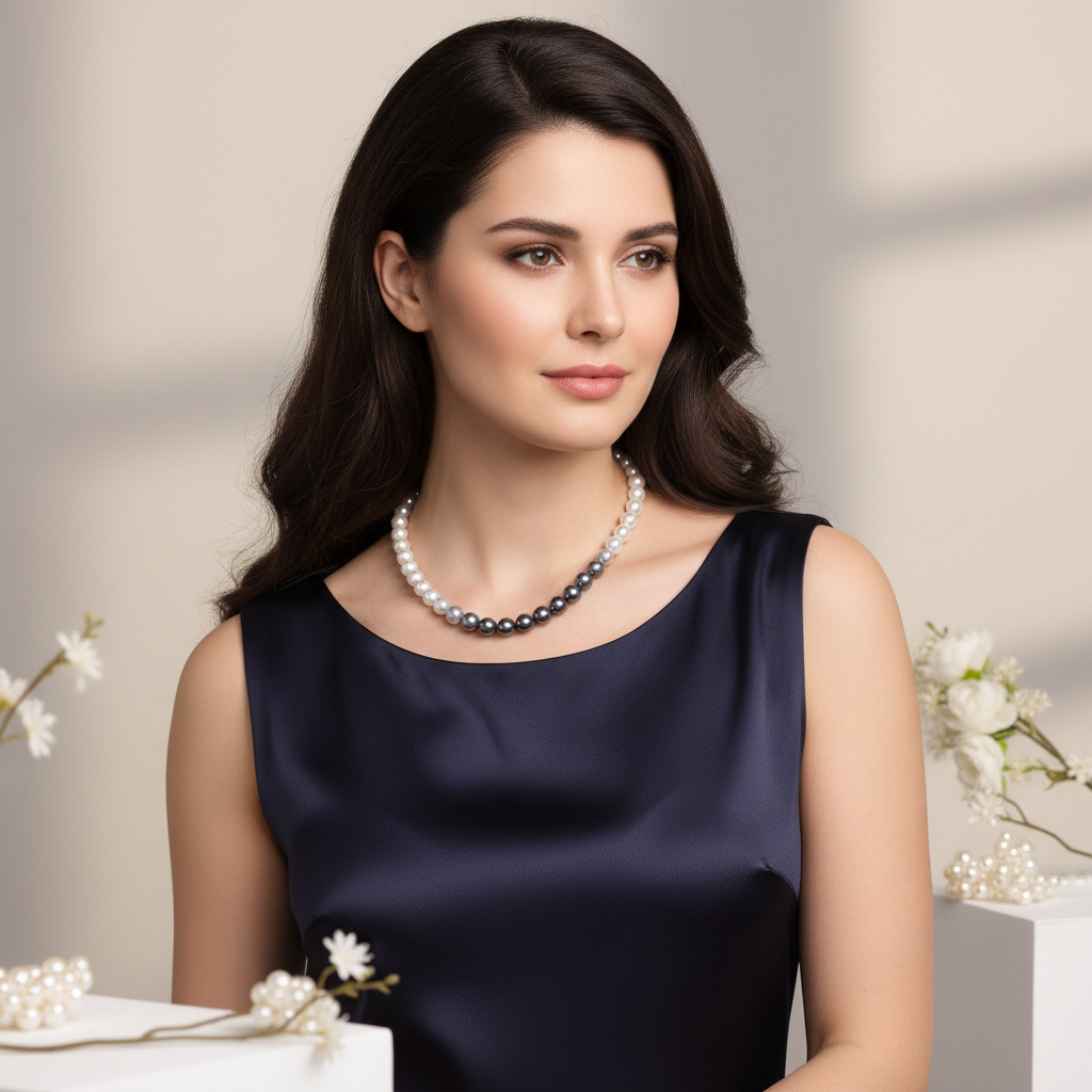 Бусы из перламутра в жемчужных серых и белых тонах создают элегантный холодный градиент. Гладкие бусины дают мягкое отражение, делая украшение универсальным и утончённым. Такой вариант отлично подойдёт как для офисного стиля, так и для вечерних образов. Фурнитура выполнена из высококачественного бижутерного сплава и удобна в носке.