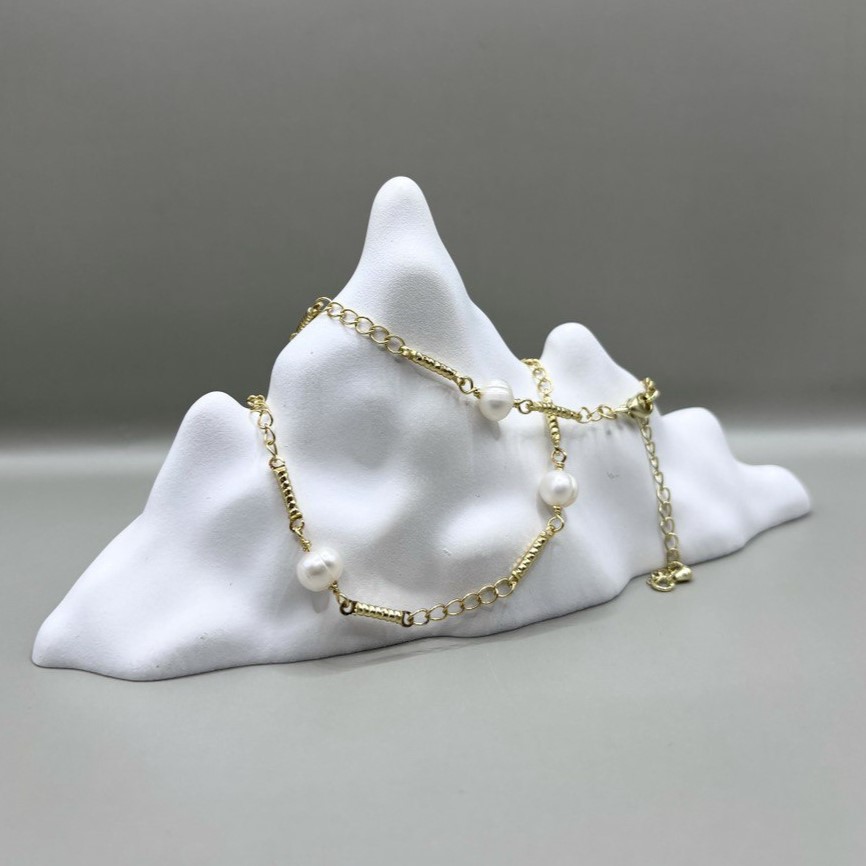 Колье с речным жемчугом в тёплой позолоте подчёркивает природное сияние жемчужин и добавляет образу мягкой благородности. Жемчуг красиво отражает свет, а качественный сплав делает украшение стойким к износу. Карабин обеспечивает надёжную фиксацию и комфорт. Колье гармонично смотрится с деловыми и романтичными комплектами.