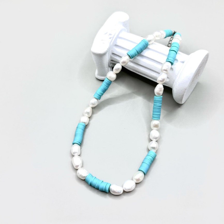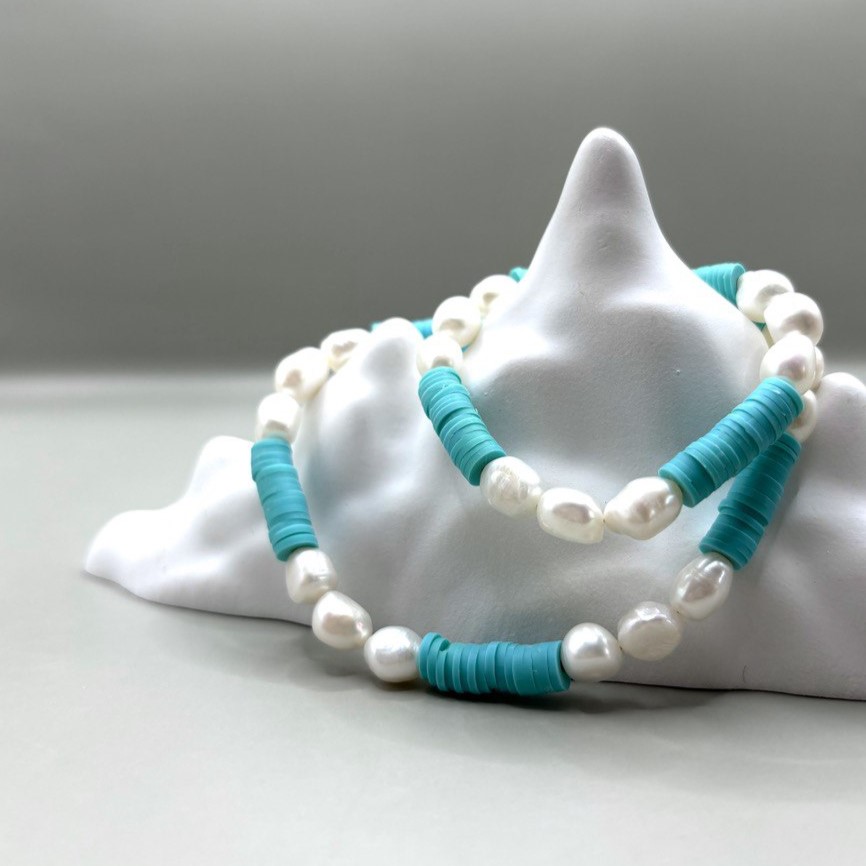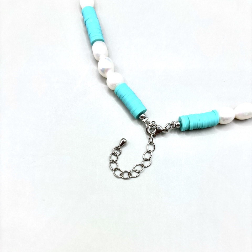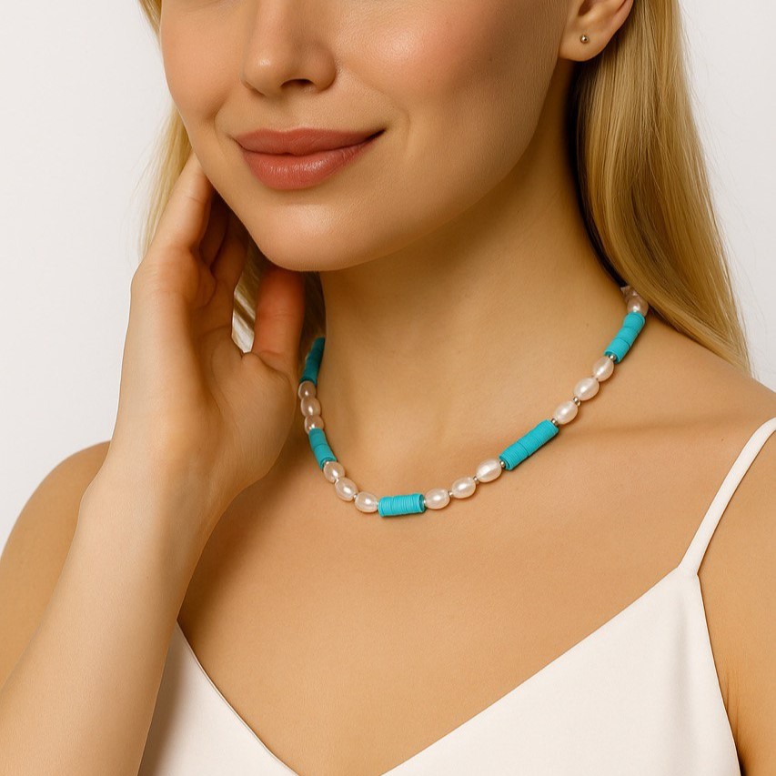 Колье с речным жемчугом и каучуком в многоцветном исполнении создаёт живой, энергичный образ. Жемчуг смягчает яркость цветов, а качественный сплав делает изделие устойчивым к носке. Карабин фиксирует украшение надёжно и удобно. Колье идеально подходит тем, кто любит стильные и свежие акценты.
