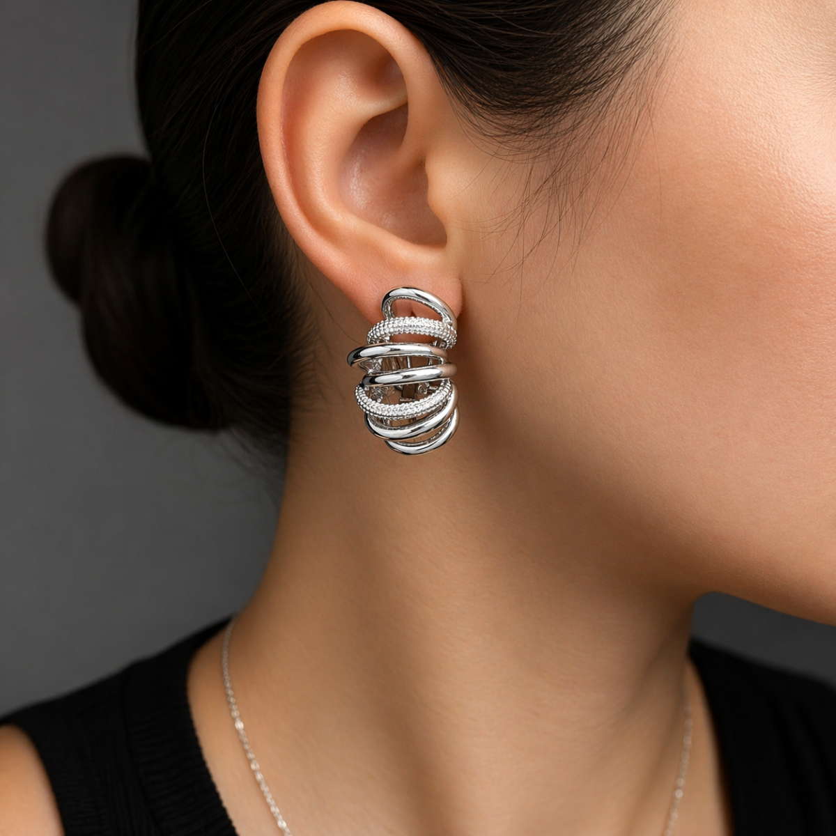 Несмотря на выразительный дизайн, серьги не выглядят тяжёлыми — форма остаётся сбалансированной и удобной для повседневной носки.