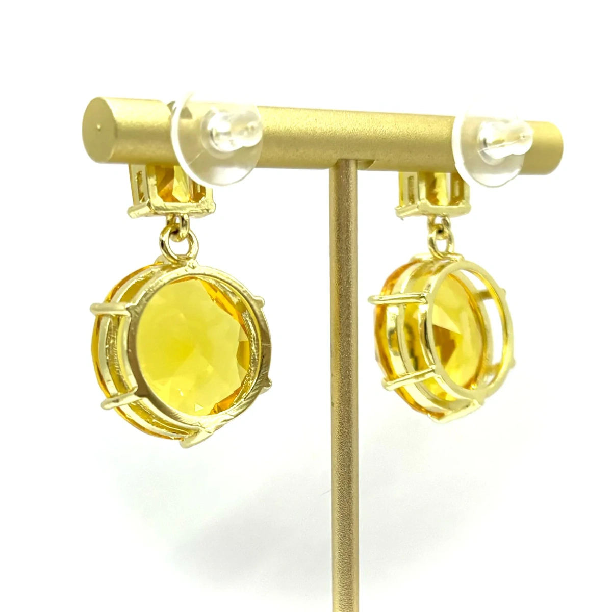 Гранёная поверхность красиво отражает свет, добавляя камню объём и сияние. Золотистая оправа подчёркивает цвет и делает серьги более «собранными» и нарядными.